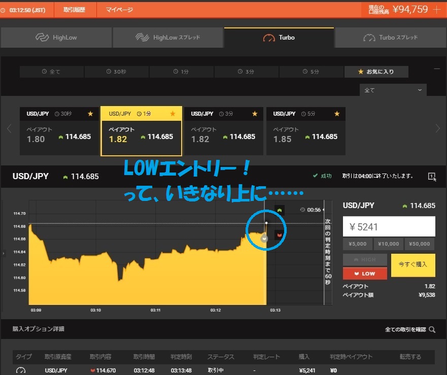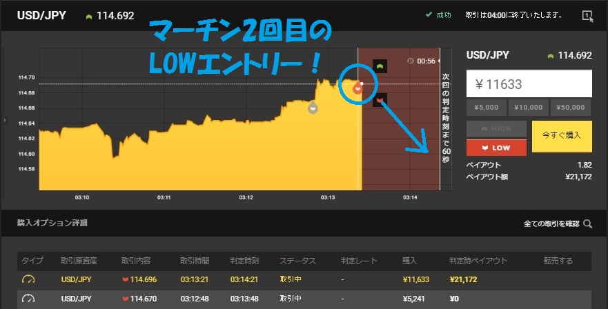 すぐにマーチン3発目のLOW予想を入れてみました。