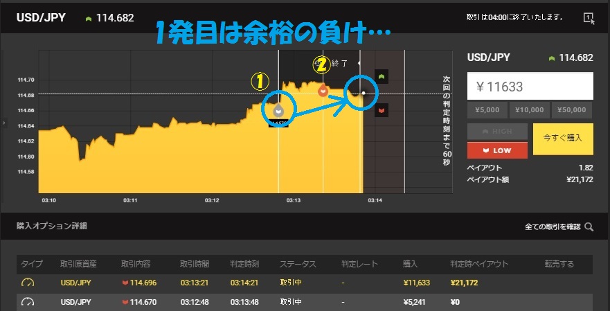 いきなりマーチン3発目まで追い込まれてしまった……。