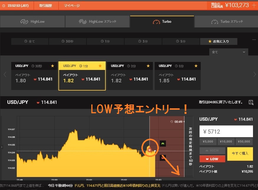 タイミングを計ってLOW予想を入れていきます。