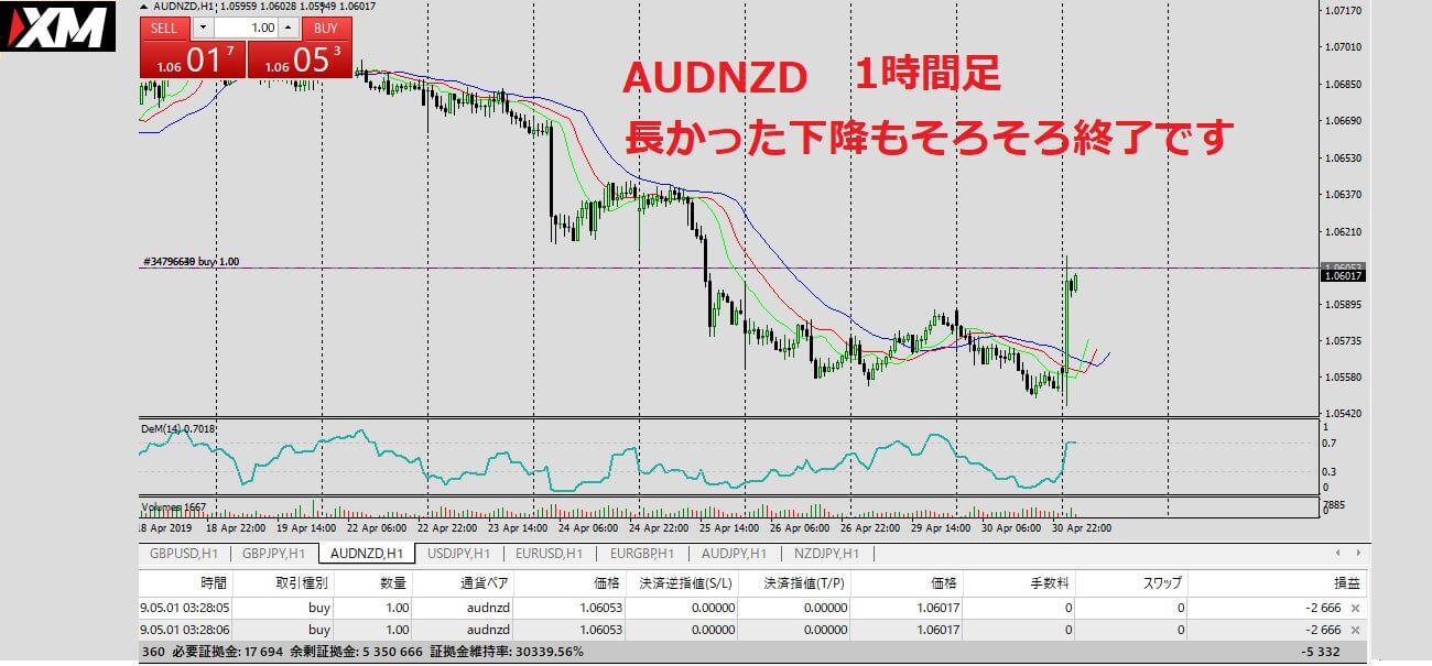 XMを 見ると、ちょうどオーストラリアドル/ニュージーランドドル(AUDNZD)の下降も終わったようです。