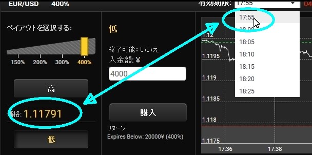 ワイバイナリーで軽く仕込んでおいたドル円!