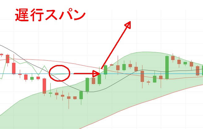 遅行スパンもローソクにぶつかる前に跳ね上げられてる。