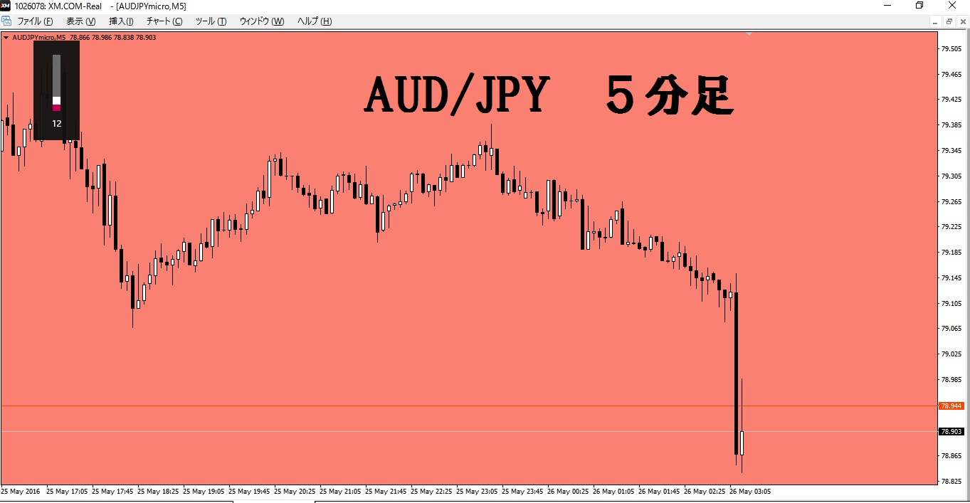 目の前で20pips以上も下落しました(((゚ Д゚)))