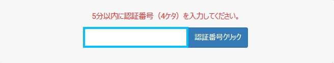 5分以内にこの認証番号を入力し、【認証番号クリック】をクリックします。